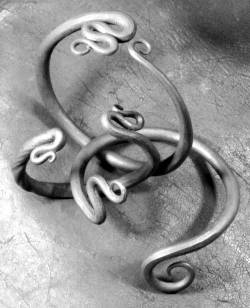Bracelets IIWe'll use traditional blacksmithing techniques to make a distinctly non-traditional item. We'll work an iron bar with fire and water, hammer and tongs, vise and anvil and learn about heat control, hammer control, and self-control while creating an iron bracelet with a tapered, sinuous motif.
