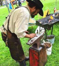 We will bring all that is necessary to demonstrate the sorts of things that a blacksmith might do to make tools, household implements, farm equipment, nails, (and because there's almost always the question, swords), or whatever seems most fitting for what is being studied.