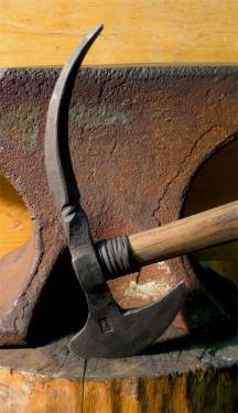 In this class you'll start with a plain or garden-variety Railroad Spike, and end up with a small hand-axe that's anything but plain. You'll learn how to forge a small axe-blade, get in some more practice punching and drifting eyes, and split, carve, and install a handle in the process.