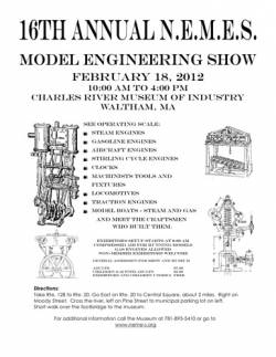This class is either: If you're interested in taking NEMES Annual Show -- New England Model Engineering Society and it's not on the calendar, please tell us using our Notification-List Page.