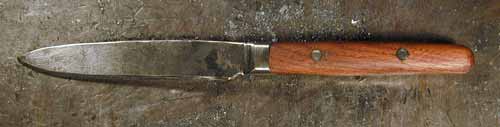 Not-So Simple KnivesA chance for our more advanced students to make a small kitchen/paring-style knife with an integral bolster and pinned wooden scale handle.